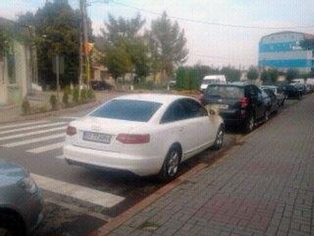 Aşa o fi gândit un conducător auto care şi-a „odihnit” limuzina peste trecerea de pietoni din centrul oraşului Darabani. (fotografie de la cititori)