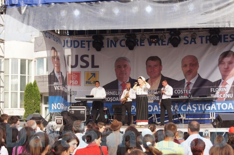 Joi, 24 mai, în ziua în care întreaga ortodoxie a sărbătorit Înălţarea la cer a Mântuitorului, iar românii şi-au comemorat eroii, la Darabani a avut loc un spectacol în care şi-au dat concursul pe scenă cunoscuţi interpreţi de folclor şi muzică uşoară. Evenimentul a fost organizat de Uniunea Social-Liberală, în programul manifestărilor intrând şi lansarea candidaţilor acestei formaţiuni politice la primăriile din colegiul Darabani, plus Consiliul Judeţean. O parte a candidaţilor USL din localităţile limitrofe şi-au adus cu autocarele susţinătorii la Darabani. În ciuda numărului mare de persoane care au luat parte la această manifestare, dărăbănenii au fost destul de reţinuţi în faţa spectacolului politic, dar şi a celui muzical. Organizaţia USL a oferit gratuit celor prezenţi la spectacol mici, bere şi îngheţată, fiind avantajaţi cei din comunele din zona oraşului Darabani. Au curs râuri de bere, toaletele ecologice lipsind cu desăvârşire din zonă.