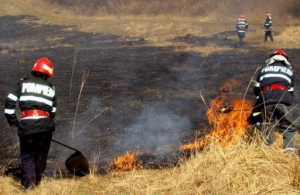Şapte autospeciale ale pompierilor au intervenit pentru stingerea unui incendiu întins pe cca. 30 hectare