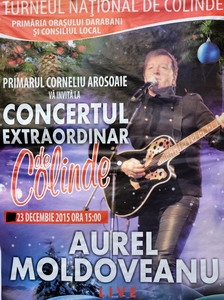 Aurel Moldoveanu va susţine miercuri la Darabani, începând cu orele 15:00, un concert de colinde. Aleşii locali au votat în şedinţa extraordinară din 9 decembrie decontarea sumei de 60 000 lei pentru manifestările cultural-artistice organizate în luna decembrie cu ocazia Sărbătorilor de iarnă. De asemenea, după şedinţa festivă de Consiliu Local vor fi felicitaţi dărăbănenii care au împlinit 50 de ani de la căsătorie, apoi aleşii îi vor aştepta pe ... continuare »