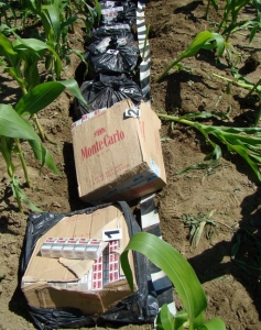 60.000 de ţigări „plantate” în lanul de porumb. Telefoane şi autoturisme ridicate pentru cercetări VIDEO