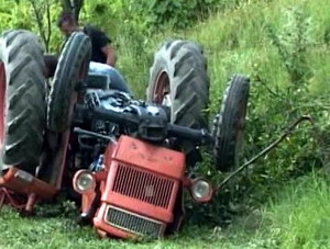 Un bărbat pulbere de beat a întors tractorul cu roţile în sus