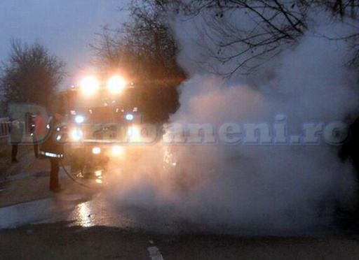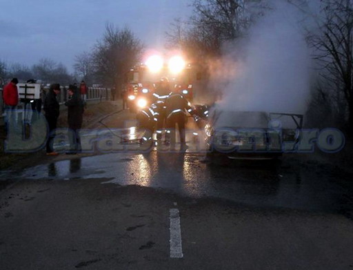 Un autoturism a luat foc în mers pe raza localităţii Vatra din comuna Hudeşti. În ciuda intervenţiei voluntarilor dărăbăneni şi a pompierilor din Dorohoi, maşina a ars în totalitate. Din fericire, nu s-au înregistrat victime.