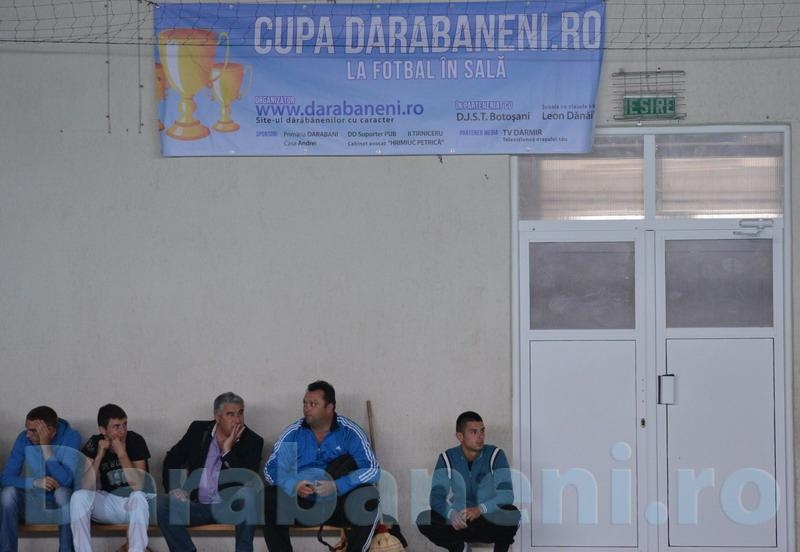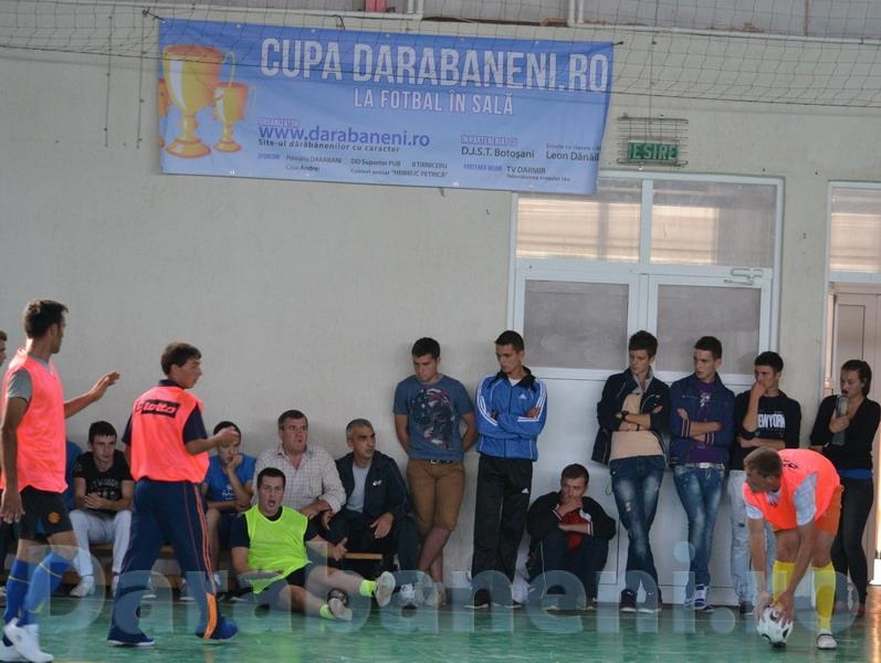 Competiţia de fotbal în sală organizată de ziarul online Darabaneni.ro în parteneriat cu Direcţia Judeţeană pentru Sport şi Tineret Botoşani şi Şcoala Generală “Leon Dănăilă” Darabani a luat startul în prima zi a acestei săptămâni. Meciul inaugural a fost reprezentat de întâlnirea dintre campionii de anul trecut, Meduzele şi Stadionu’ lui Sebastian Ştefănică, care a marcat singurul gol al echipei sale. Stîncă şi Vieru cu câte o „dublă” au tranşat meciul. Echipa lui Cătălin Cucuruzac, FC Păltiniş, a învins categoric Al Qaeda cu 10-3, Tatarcan punctând de patru ori şi Balan reuşind hattrick-ul, iar Popovici a marcat o „dublă” pentru Al Qaeda. Al Nasr nu a avut pic de respect pentru Titanii, pe care i-au întrecut cu 8-2, Costel Dobrincu fiind goalgeterul celor de la Al Nasr, cu patru reuşite.