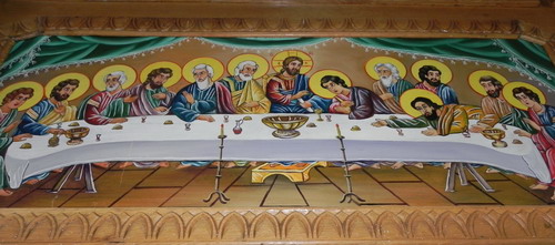 Acele vremuri au apus, însă. Încet, încet, comenzile au început să se împuţineze. „Preţul unei rame a tabloului a ajuns să fie mai mare, decât pictura în sine şi lumea a renunţat”, ne-a spus Vasile Foca. Soţia oftează şi ea. Din păcate astăzi „moda” s-a schimbat. Kitsch-ul a luat locul artei. „Nevoile vieţii m-au împins să mă despart de multe dintre lucrările mele despre care spuneam, la un moment dat, că nu au preţ. Am mai rămas cu ciurucurile acestea”, ne mărturiseşte excesiv de modest, pictorul Foca. „Furtună pe mare”(foto, primul de jos) rămâne favoritul său, dar regretă că este pictat pe o pânză foarte fină, care s-a şubrezit odată cu trecerea timpului. În ultimii ani a realizat mai mult pictură bisericească, care este mult mai complexă decât cea peisagistică. Catapeteasma bisericii din Başeu (Havârna)(foto sus) este opera dărăbăneanului, în faţa căreia se închină creştinii ortodocşi. Pictura nu este unica sa preocupare artistică. Goblenul este o altă mare pasiune a lui Vasile Foca. A realizat sute de goblenuri, depăşind de multe ori bariera matriţelor şi a paletei de culori. Apartamentul său reprezintă o adevărată galerie de artă, pe care nu a organizat-o niciodată într-un cadru oficial, dar care ar fi meritat-o cu vârf şi îndesat. Ajungem din nou la acelaşi crud adevăr: „Nu ne-am născut în locul potrivit” (Lucian BĂLĂUCĂ)