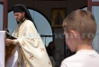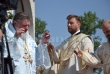 Puhoi de lume la slujba de sfinţire a Mănăstirii de la Eşanca, în ciuda vremii caniculare de duminică. În jurul orelor 10:00, maşinile parcate se întindeau pe aproximativ un kilometru de drum prăfuit din Eşanca. Totul a decurs conform planului: ierarhii au fost întâmpinaţi la 8:15 şi au fost cinci la număr, nu patru: IPS Teofan, mitropolitul Moldovei şi Bucovinei, PS Macarie, episcopul românilor ortodocşi din Europa de Nord, PS Varlaam Ploieşteanul, vicar patriarhal, Calinic Botoşăneanul, episcop vicar al Arhiepiscopiei Iaşilor şi PS Ioachim Băcăuanul, episcop-vicar al Arhiepiscopiei Romanului şi Bacăului care au oficiat slujba de sfinţire a lăcaşului monahal.