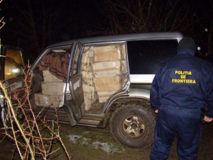 Contrabandă cu jeepul la frontieră. Ţigări de peste 200.000 lei confiscate FOTO & VIDEO