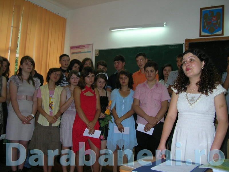 Joi a avut loc festivitatea de absolvire a celor 33 de elevi de clasa a VIII-a din cadrul Grupului Şcolar Darabani. Diriginta clasei, prof. Marinela Prisăcariu, a strigat pentru ultima dată catalogul. Cea mai înaltă treaptă a podiumului clasei a fost ocupată de eleva Smărăndiţa David, căreia i-a fost înmânată şi medalia de bronz obţinută la concursul naţional de matematică „Euclid” plus o menţiune la olimpiada de istorie. Al doilea elev al clasei a fost Şerban Bărănceanu care şi-a adjudecat şi premiul al III-lea la concursul de matematică „Năstăsescu”, pentru care urmează să primească medalia de bronz. Alexandra Zvorişteanu a ocupat cea de a treia treaptă a podiumului micilor absolvenţi plus o diplomă pentru clasarea pe locul secund la centrul judeţean de evaluare în cadrul concursului naţional de matematică „Năstăsescu”. De asemenea, absolvenţii ciclului gimnazial au fost recompensaţi de către directorul Alin Prisăcariu cu diplome pentru rezultatele obţinute la alte concursuri şcolare. Elevii au intrat deja în febra examenului de admitere la liceu care va debuta în 20 iunie cu teza la limba română, iar două zile mai târziu cu cea la matematică. (Ionel Bichir, text şi foto