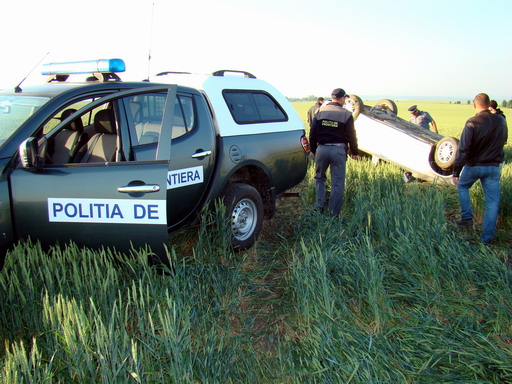 Trei contrabandişti urmăriţi de poliţişti s-au răsturnat cu maşina plină de ţigări