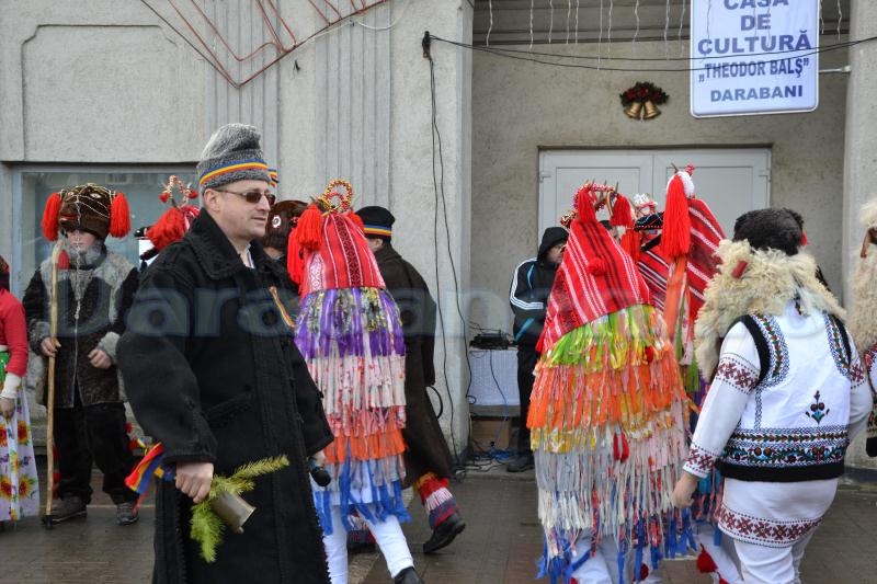 Dărăbănenii au trecut peste vremea mohorâtă de afară, întârzierea spectacolului şi unele inadvertenţe de ordin tehnic şi au încălzit temperatura din Sala Casei de Cultură „Theodor Balş” cu colinde şi urături. Edilul şef al urbei, Corneliu Aroşoaie, a invitat mai mulţi primari în marea lor majoritate social-democraţi, lui Lucian Trufin fiindu-i înmânat, ca semn al ospitalităţii un colac, de către Galia Hrimiuc, consilier local.