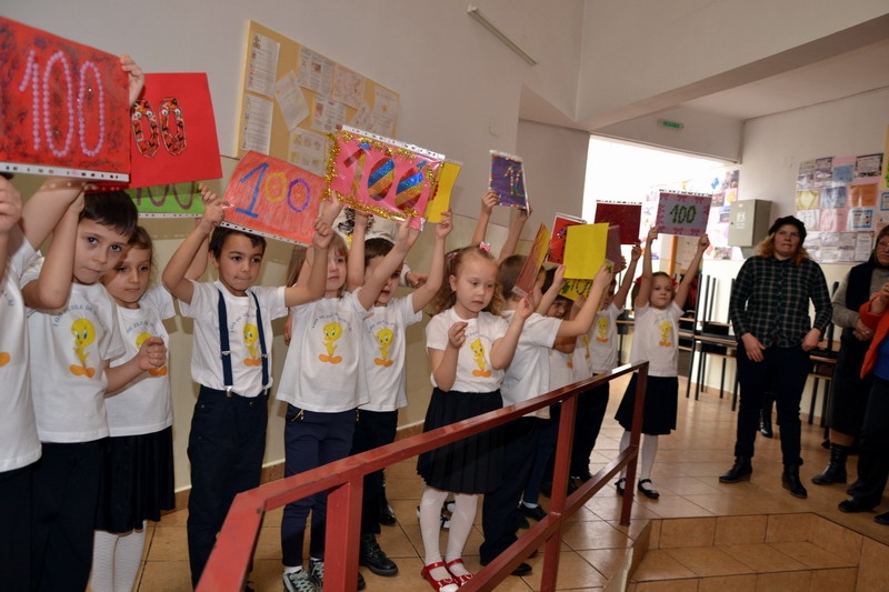 Copiii, ajutați de părinți sau bunici, au realizat machete care au cuprins câte 100 de piese, prezentând simbolistica lucrării lor. Momentul culminant al zilei a fost participarea la Parada numărului 100, cei mici mărșăluind prin școală în frunte cu Violeta Ungureanu, în aplauzele colegilor lor, a părinților, bunicilor și cadrelor didactice, printre acestea și Angelica Crețu, directorul unității de învățământ. De asemenea, elevii au participat și la Concursul „10 x 10”, fiind răsplătiți cu medalii.