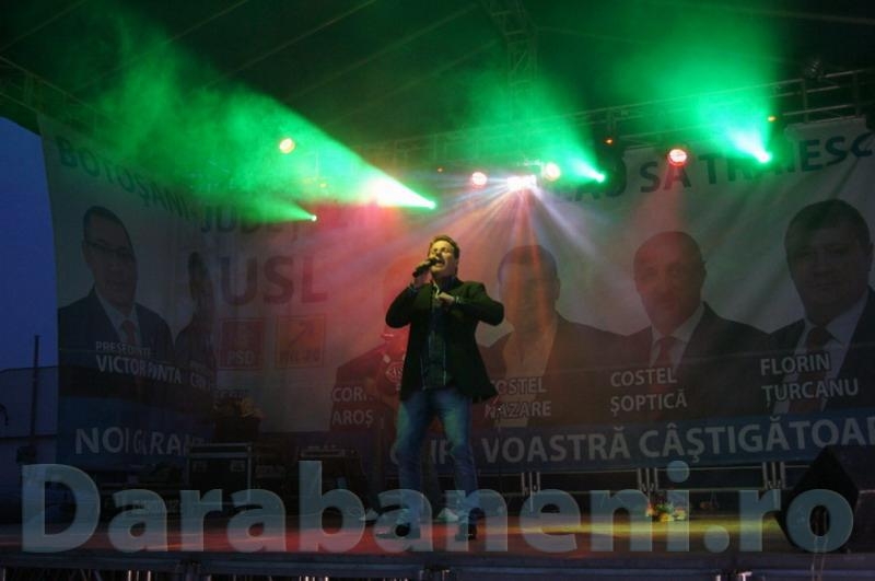 Joi, 24 mai, în ziua în care întreaga ortodoxie a sărbătorit Înălţarea la cer a Mântuitorului, iar românii şi-au comemorat eroii, la Darabani a avut loc un spectacol în care şi-au dat concursul pe scenă cunoscuţi interpreţi de folclor şi muzică uşoară. Evenimentul a fost organizat de Uniunea Social-Liberală, în programul manifestărilor intrând şi lansarea candidaţilor acestei formaţiuni politice la primăriile din colegiul Darabani, plus Consiliul Judeţean. O parte a candidaţilor USL din localităţile limitrofe şi-au adus cu autocarele susţinătorii la Darabani. În ciuda numărului mare de persoane care au luat parte la această manifestare, dărăbănenii au fost destul de reţinuţi în faţa spectacolului politic, dar şi a celui muzical. Organizaţia USL a oferit gratuit celor prezenţi la spectacol mici, bere şi îngheţată, fiind avantajaţi cei din comunele din zona oraşului Darabani. Au curs râuri de bere, toaletele ecologice lipsind cu desăvârşire din zonă.