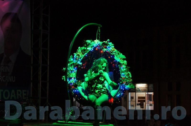 Concertul a fost deschis de elevii Clubului Copiilor din Darabani, coordonaţi de prof. Mirel Dascălu, după care au urcat pe scenă interpreţii de folclor Cornelia Ciobanu, Dan Doboş şi Alexandru Recolciuc. Trecerea spre muzica uşoară a făcut-o Anne Marie, urmată de artistul Ciro de Luca, fost reprezentat al României la Eurovision. De departe, capul de afiş al show-ului a fost reprezentat de celebra artistă Anna Lesko, care a impresionat audienţa prin costumaţia şi evoluţia sa. Interpreta din Chişinău a purtat două rochii extravagante, şi beneficiind de o coregrafie impresionantă, a reuşit cu adevărat să-i electrizeze pe spectatori. De altfel, spectacolul s-a încheiat aproape de orele 23:00 pe ritmurile melodiei "24". (A.D.A.)