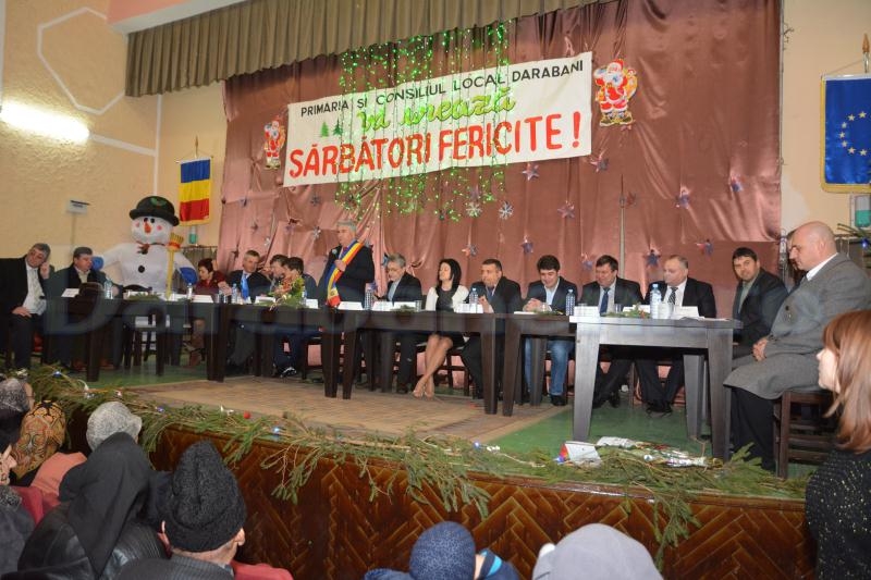 Ultima şedinţă ordinară a Consiliului Local Darabani a avut loc sâmbătă, 20 decembrie, la Casa de Cultură „Theodor Balş” din localitate. Aleşii dărăbăneni au ales preşedintele de şedinţă pe următoarele 2 luni, iar şefii Poliţiei şi SPF Darabani şi-au prezentat rapoartele de activitate în faţa dărăbănenilor. De asemenea, 23 de familii care au împlinit 50 de ani de la căsătorie au fost felicitate de primarul Corneliu Aroşoaie.