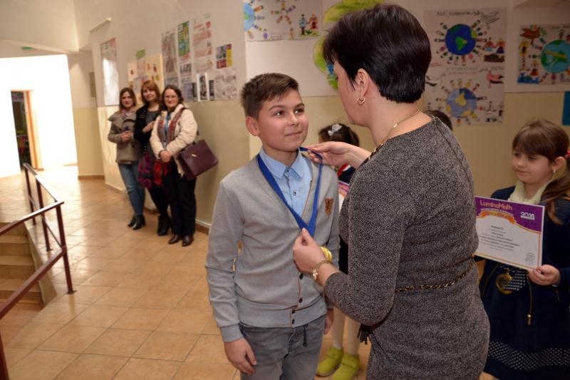 „Mă bucur să fiu aici astăzi între voi. Ne-am adunat pentru a-i felicita pe colegii voștri care au obținut rezultate excepționale la Concursul național Lumina Math”, le-a spus elevilor, Angelica Crețu, directorul unității de învățământ. Premianții au primit aplauze furtunoase în lumina blitzurilor aparatelor foto și telefoanelor celor prezenți la acest eveniment. Angelica Crețu i-a strigat pe rând, pe micii matematicieni, cei mai mulți elevi premianți fiind pregătiți de Monica Cricleviț, printre care și Răzvan Grigoraș, cel care a câștigat o tabără națională de matematică, organizată la finele lunii iulie.